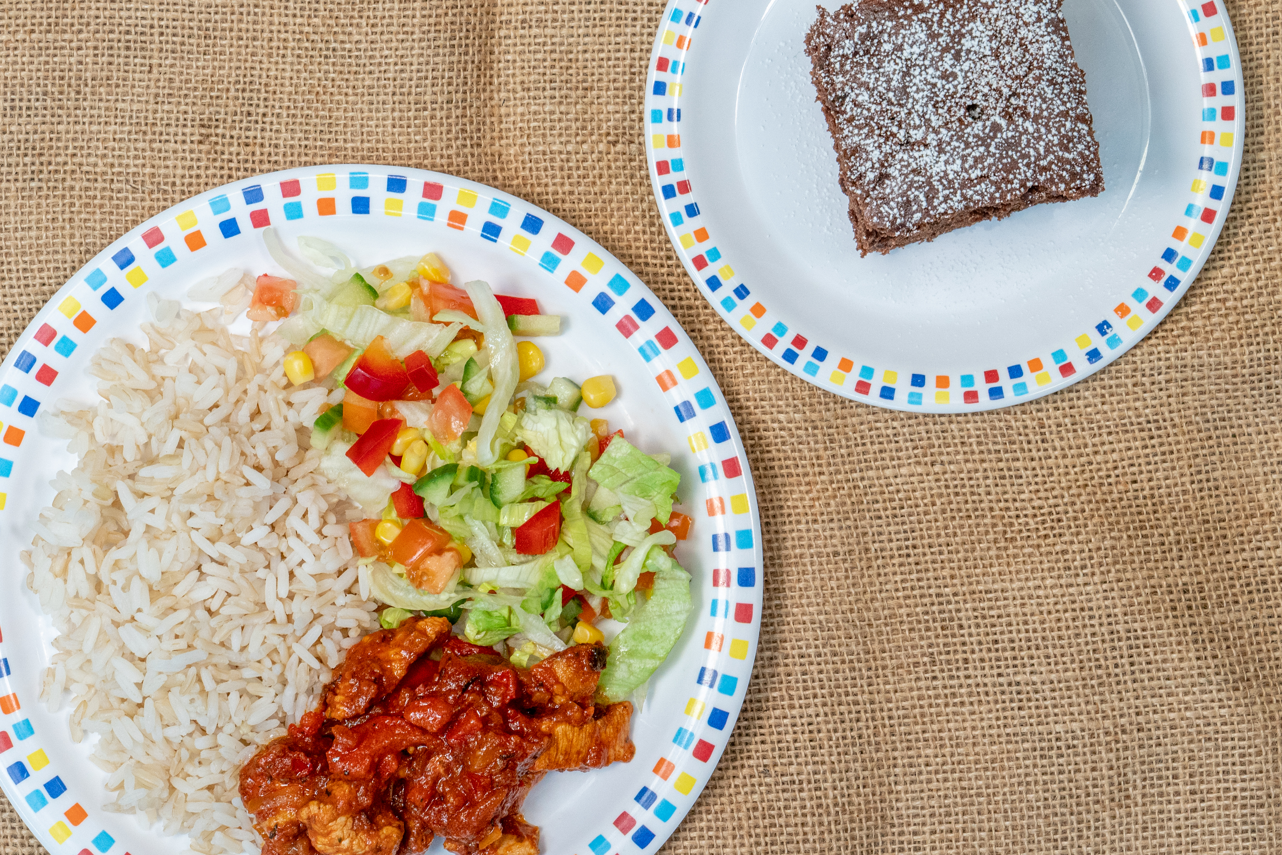 Spanish Chicken with Steamed Rice & Beetroot Brownie